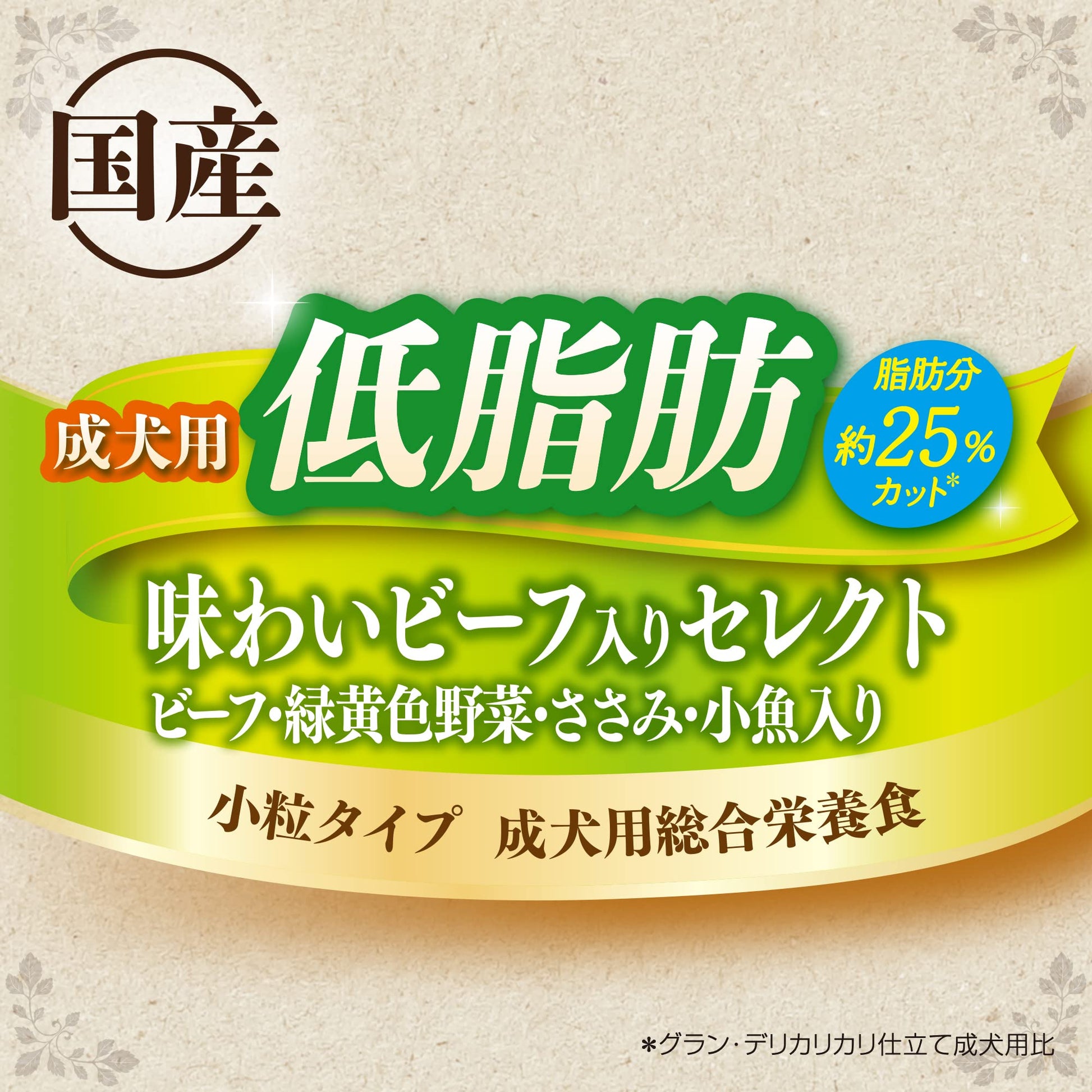 - 体重が気になる愛犬にぴったりの低脂肪設計※脂肪分約25%カット(グラン・デリカリカリ仕立て成犬用比)