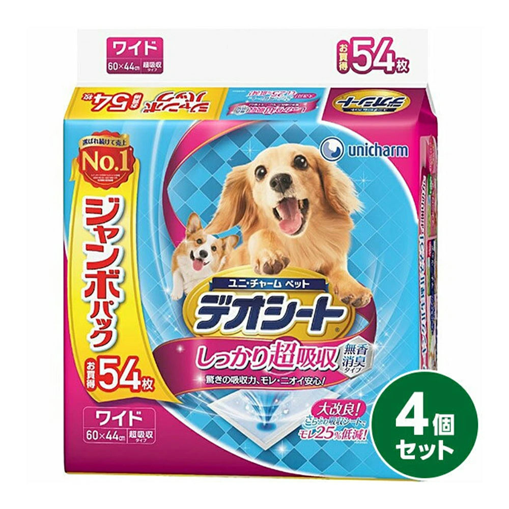 驚きの吸収力、モレ・ニオイ気にならない! デオシート しっかり超吸収 無香消臭タイプ ワイド 【54枚*4個セット】 ユニチャーム 犬用 猫用 シート ペットシート トイレシート おしっこ ペット用品 まとめ買い 送料無料